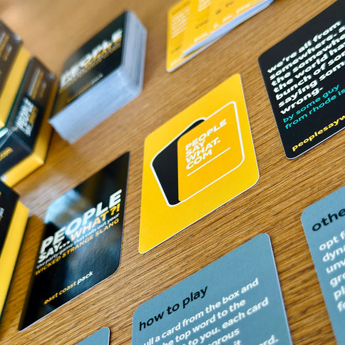 PeopleSayWhat?! comes with 75 cards (including some instruction cards and PSW?! branded cards). All designs and illustrations are hand drawn and original.